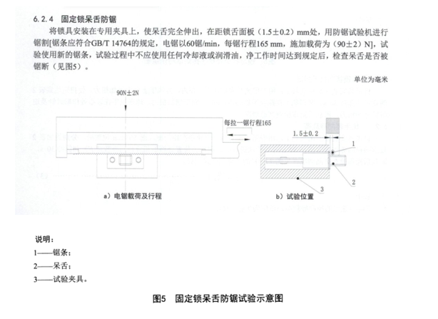 鎖具防鋸試驗機用于鎖具的固定鎖呆舌防鋸性能測試,滿足QB/T 2476-2017標(biāo)準(zhǔn)6.2.4條款要求: