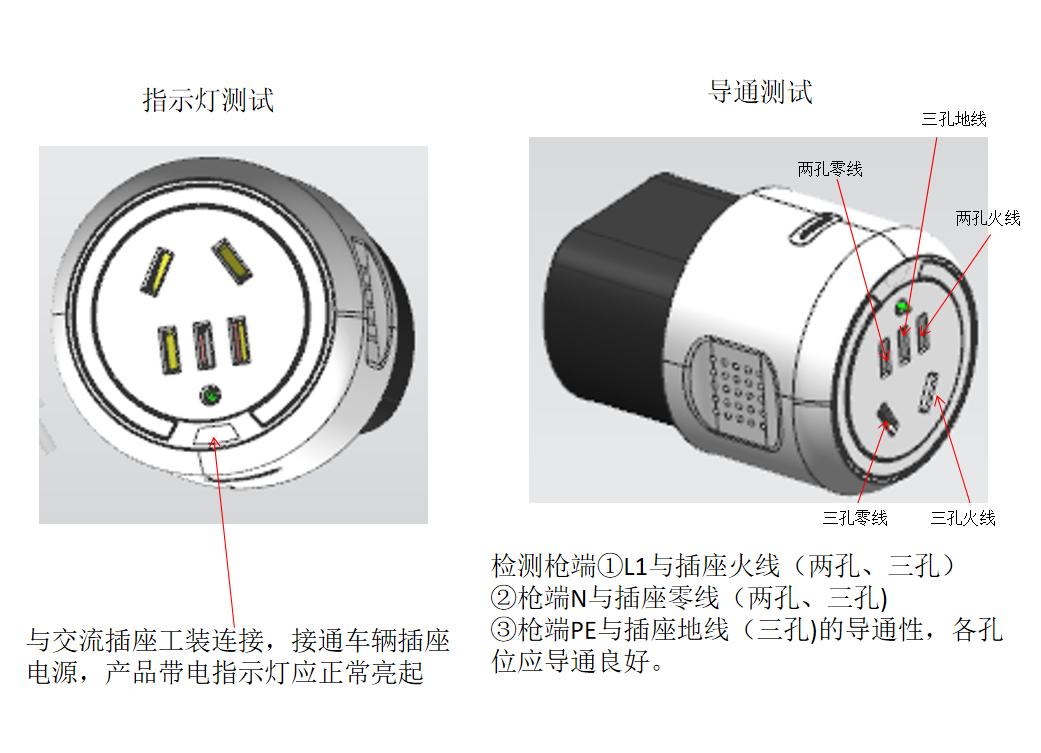 2. 導(dǎo)通極性檢測:檢測充電槍頭部與尾部出線間的導(dǎo)通與極性