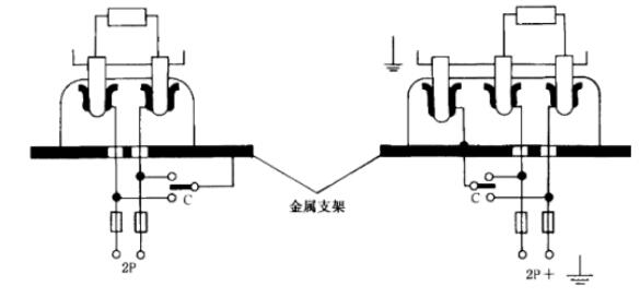 3、試驗(yàn)電路圖:參考圖 7 示意圖,兩極電器附件要在一半的行程數(shù)之后,操作選擇開關(guān) C——選擇開關(guān) C 將金屬支架與易觸及金屬部件連接到電源的其中一個(gè)極;