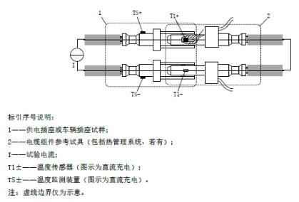 22、配置直流車輛插頭(250A)、交流車輛插頭(32A 和 63A)參考試具各一套,配 K 型熱電偶,線徑不大于 0.3mm,配端子或端頭加熱單元,總加熱功率不小于 50W,熱電偶和加熱單元安裝位置參考圖 17 和圖 18;