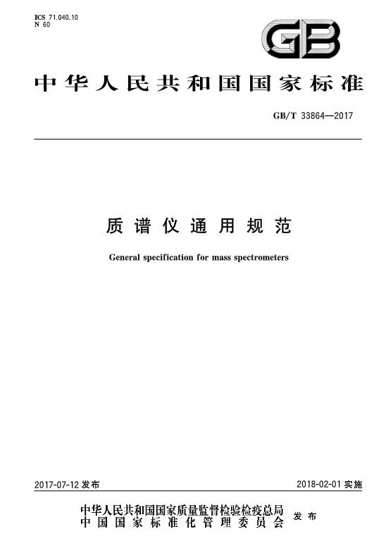 2017年8月9日,中國國家標準化管理委員會公開了《質譜儀通用規(guī)范》標準文本(標準號:GB/T 33864-2017),將于2018年2月1日開始實施。該國家標準的制定是各類質譜儀系列標準制訂工作的基礎,對質譜儀器性能測定標準化工作具有重要的推動作用。