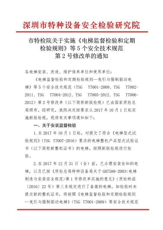 關(guān)于實施《電梯監(jiān)督檢驗和定期檢驗規(guī)則》等5個安全技術(shù)規(guī)范第2號修改單的通知