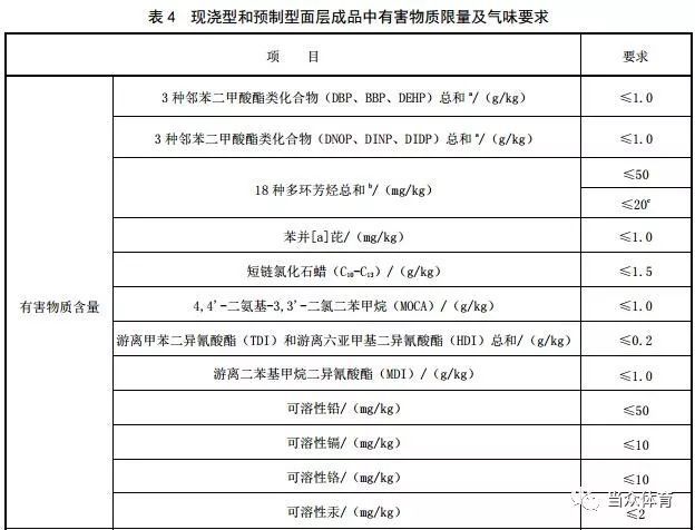11、增加了合成材料面層運(yùn)動(dòng)場(chǎng)地成品和原料中有害物質(zhì)限量要求和氣味要求及試驗(yàn)方法