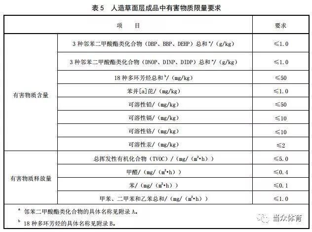 5.1.2 鋪裝前應(yīng)提供所需使用的原料清單(包括品名和數(shù)量)、按照GB/T 16483 編寫的化學(xué)品安全技術(shù)說明書和型式檢驗(yàn)報(bào)告,所使用的原料以及鋪裝后的運(yùn)動(dòng)場(chǎng)地在正常及預(yù)期使用條件下不應(yīng)對(duì)人體健康和生態(tài)環(huán)境產(chǎn)生危害。