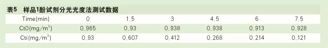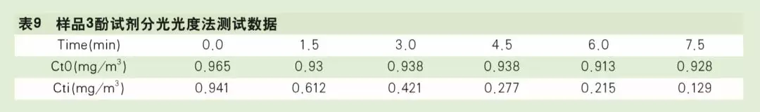 使用酚試劑分光光度法[2]測甲醛CADR時試驗準備周期較長,在配制吸收液、顯色液、采樣、樣品轉(zhuǎn)移及顯色等環(huán)節(jié)對操作要求較高,對試驗人員專業(yè)知識有較高要求,同時檢測艙內(nèi)發(fā)生的甲醛污染物初始濃度監(jiān)測控制不直觀,也不容易發(fā)現(xiàn)檢測過程中的異常現(xiàn)象。