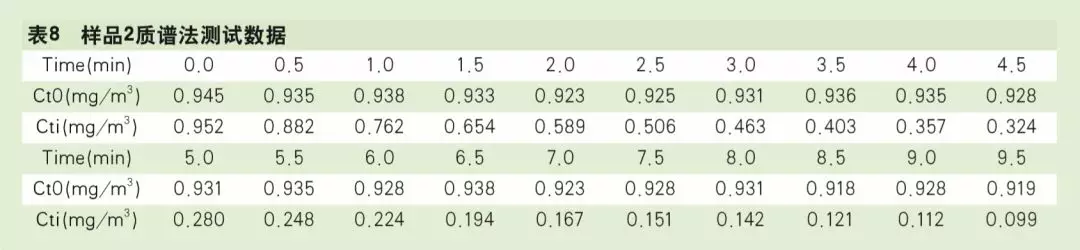 (2)相同測試條件下,質(zhì)譜法測試有效數(shù)據(jù)點明顯比酚試劑分光光度法交叉采樣的有效數(shù)據(jù)點要多,這對于甲醛CADR值高的空氣凈化器測試非常有意義。