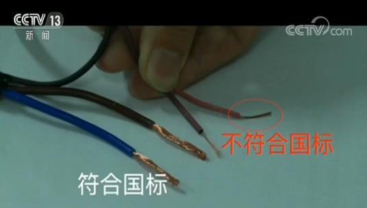 廣東質(zhì)檢院 電器附件檢測(cè)室工程師 劉振峰:我們現(xiàn)在摸起來(lái)里面的配線是很細(xì)、很軟的。標(biāo)準(zhǔn)要求至少要1.0平方(毫米)。所以現(xiàn)在我們剪開(kāi)看一下這款線,看看它截面積有多少。就現(xiàn)在可以看到,這兩條線是屬于L級(jí)和N級(jí)的兩條帶電線,橫截面積遠(yuǎn)遠(yuǎn)沒(méi)有達(dá)到國(guó)標(biāo)要求的1.0平方毫米的一個(gè)要求。