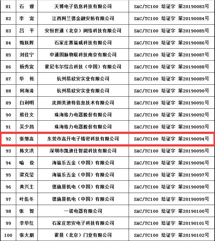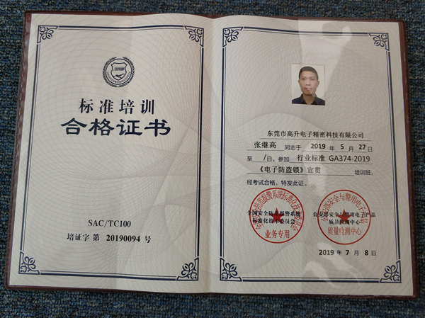 以下為我司培訓人員取得《標準培訓合格證書》展示: