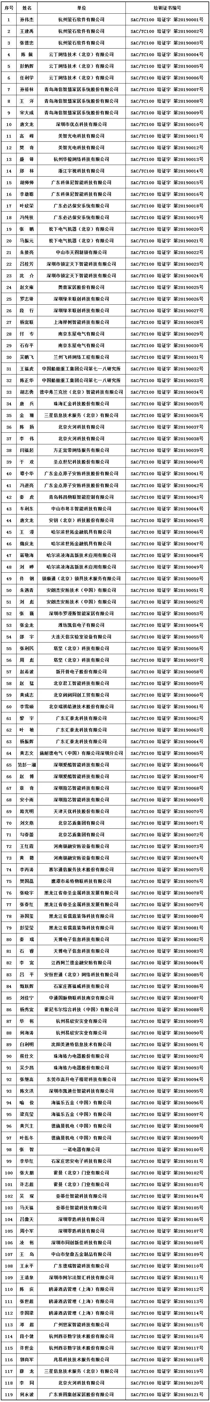 2019年5月27日,全國安全防范報警系統(tǒng)標準化技術委員會和公安部檢測中心在北京聯(lián)合舉辦了公共安全行業(yè)標準《電子防盜鎖》(GA 374-2019)首期培訓會。經(jīng)統(tǒng)計,共有119人通過現(xiàn)場考試,并取得《標準培訓合格證書》,首期培訓成效明顯。
