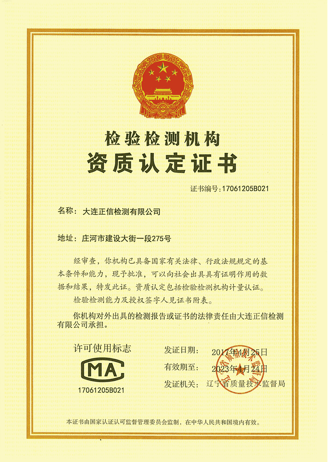 大連正信檢測(cè)有限公司(簡(jiǎn)稱正信檢測(cè))創(chuàng)立于2016 年,誕生于黃海之濱,植根綠水青山,守望碧水藍(lán)天,作為環(huán)境檢測(cè)監(jiān)測(cè)的推進(jìn)者與環(huán)境咨詢的服務(wù)者,在領(lǐng)跑行業(yè)行程中臻成完善的質(zhì)量管理體系,取得國家CMA資質(zhì)認(rèn)證,尤在國家標(biāo)準(zhǔn)GB36246-2018發(fā)布后取得中小學(xué)合成材料面層運(yùn)動(dòng)場(chǎng)地全部54 項(xiàng)檢測(cè)能力認(rèn)證,成為遼寧省首家取得塑膠跑道領(lǐng)域新國標(biāo)資質(zhì)認(rèn)證的第三方檢驗(yàn)檢測(cè)機(jī)構(gòu)。