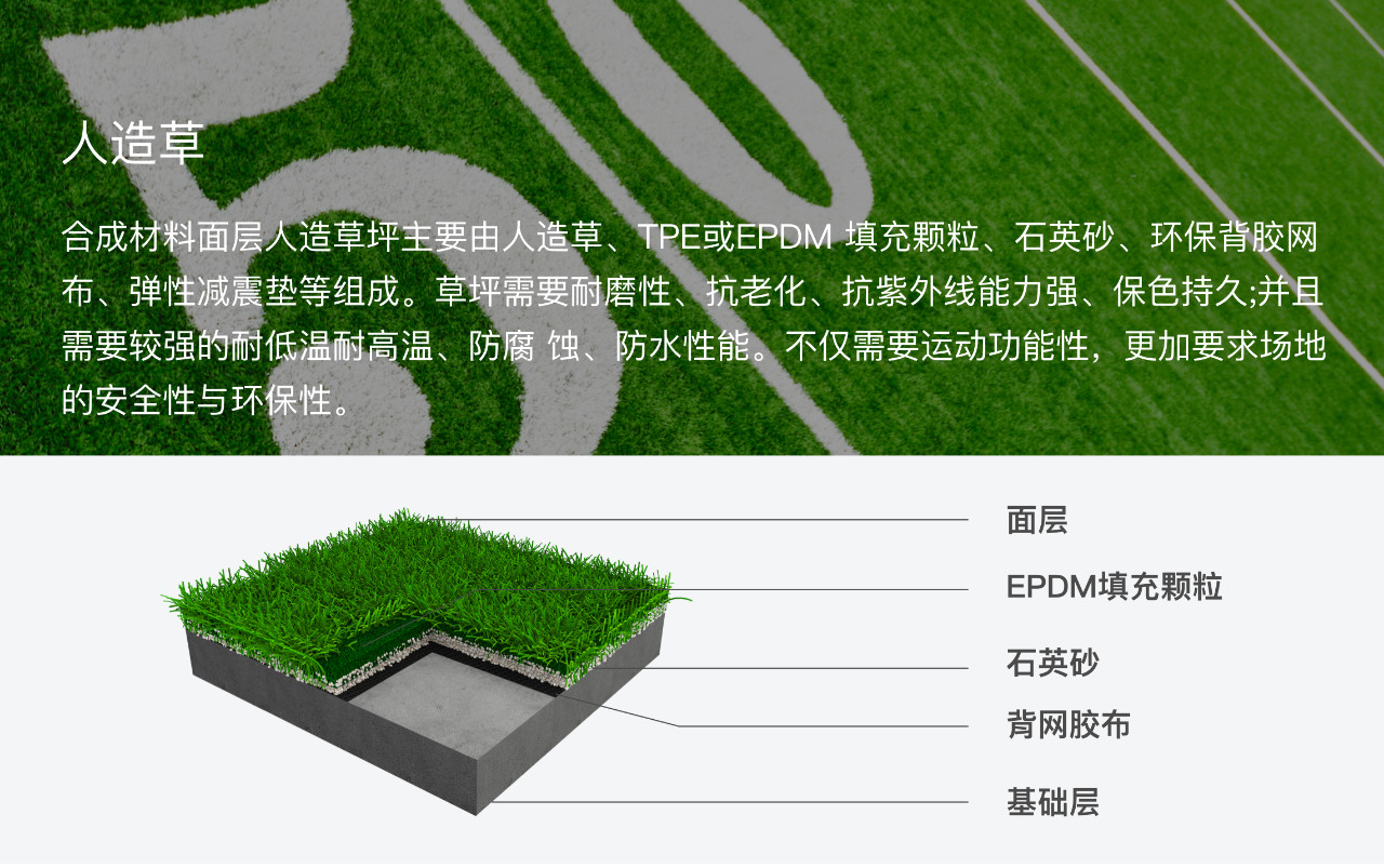 運(yùn)動(dòng)場(chǎng)地合成材料面層指用高分子合成材料鋪裝的運(yùn)動(dòng)場(chǎng)地面層,包括塑膠跑道、籃排球運(yùn)動(dòng)場(chǎng)和人造草皮等,一般由聚氨酯膠水、聚氨酯色漿、EPDM 顆粒、ETPU 顆粒、SBR顆粒等組成。