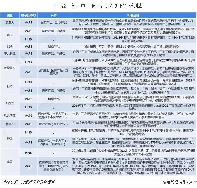 日本對于蒸汽型電子煙(VAPE)和HNB(加熱不燃燒)產(chǎn)品分開監(jiān)管,對于蒸汽型電子煙的監(jiān)管極為嚴(yán)格,禁止未經(jīng)許可在液體中添加尼古丁,對于含有尼古丁的蒸汽型電子煙的進(jìn)口、銷售、制造、廣告等需要申請并取得相應(yīng)的許可,目前日本市場暫無獲批的含尼古丁蒸汽電子煙,非尼古丁蒸汽型電子煙則不受監(jiān)管。