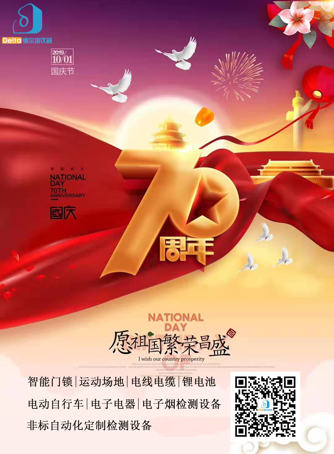 70年砥礪前行,70年拼搏奮斗,70年春華秋實(shí),偉大征程的70年,是崢嶸的歲月,更是一段段波瀾壯闊的歷史和大國(guó)征程里的閃光記憶。Delta德爾塔儀器在此熱烈祝賀中華人民共和國(guó)成立70周年,普天同慶,祝愿祖國(guó)更加繁榮昌盛!祝大家國(guó)慶節(jié)快樂!結(jié)合公司實(shí)際生產(chǎn)和要求,國(guó)慶期間放假安排如下:10月1日-10月7日,10月8日正常上班。