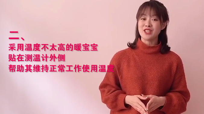 其二,采用溫度不太高的暖寶寶貼在測(cè)溫計(jì)外側(cè),幫助其維持正常工作使用溫度。