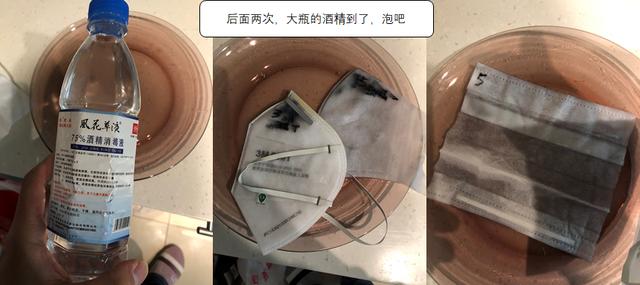 3,第三次,新買的75%酒精終于到貨了!新加入了一個(gè)出口的口罩,這次不吝嗇了,直接倒酒精泡,泡完晾干等第二天再測(cè)