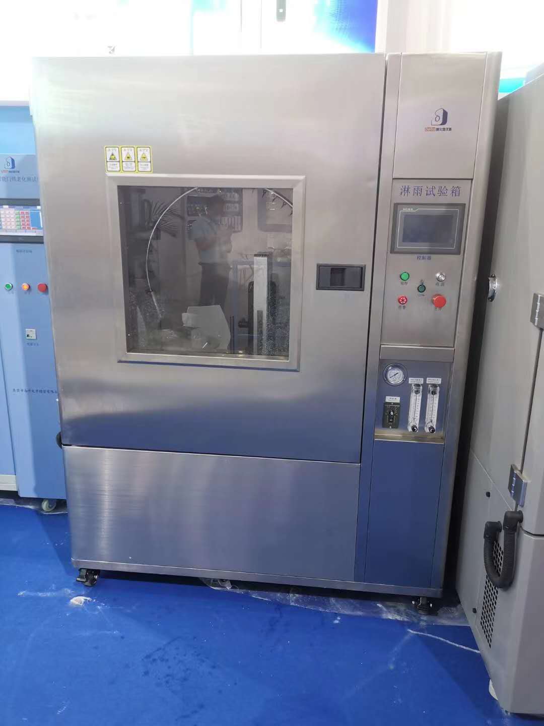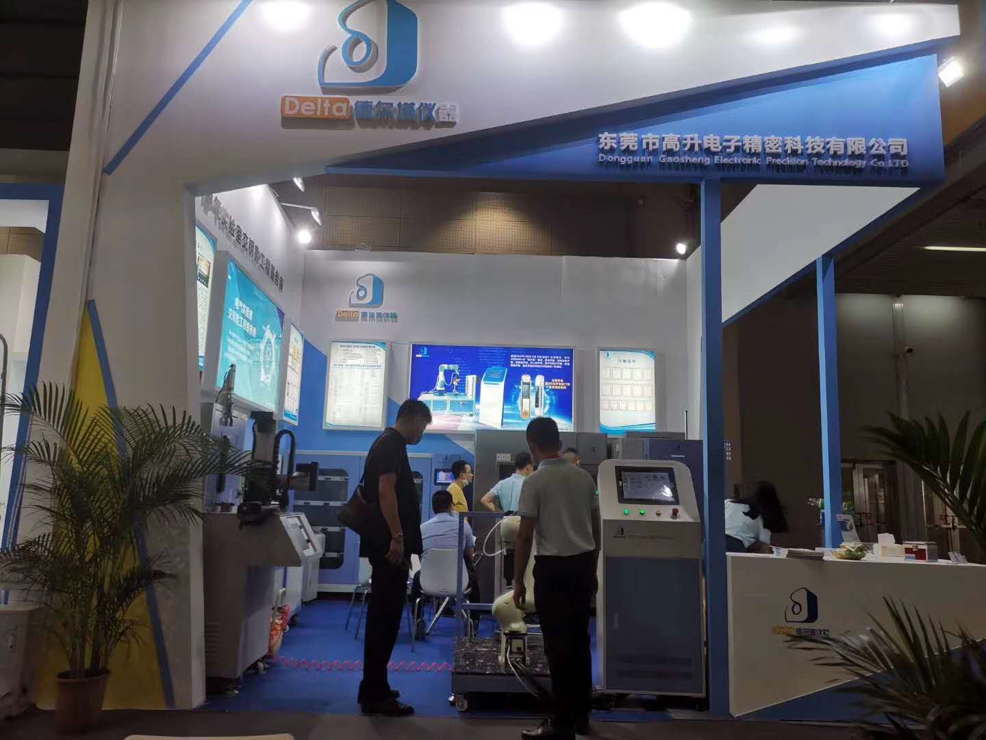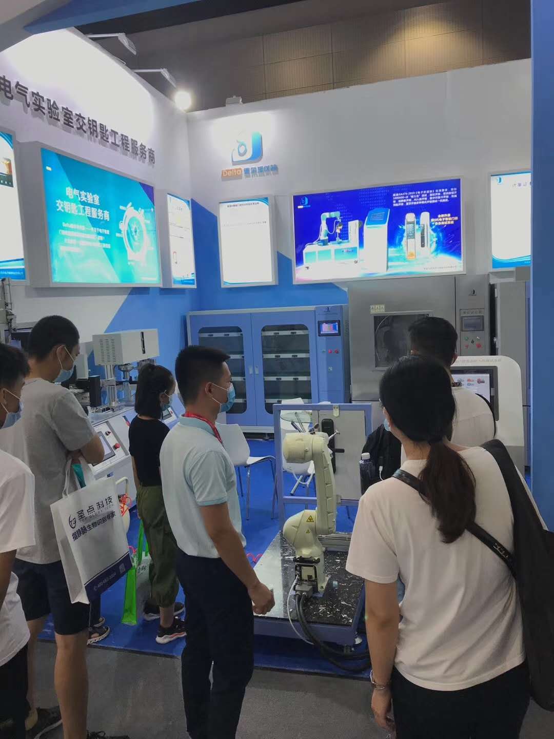 Delta德爾塔儀器工作人員為參觀的客戶朋友介紹智能門鎖檢測設(shè)備的使用