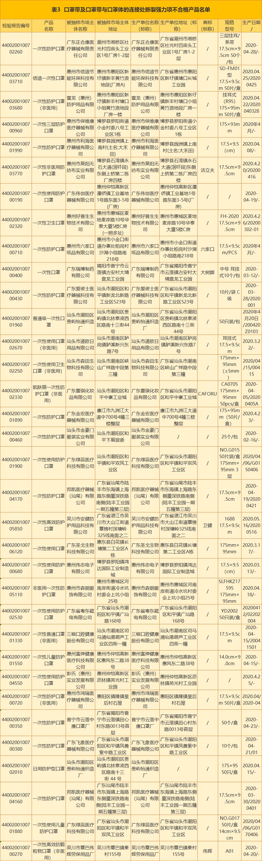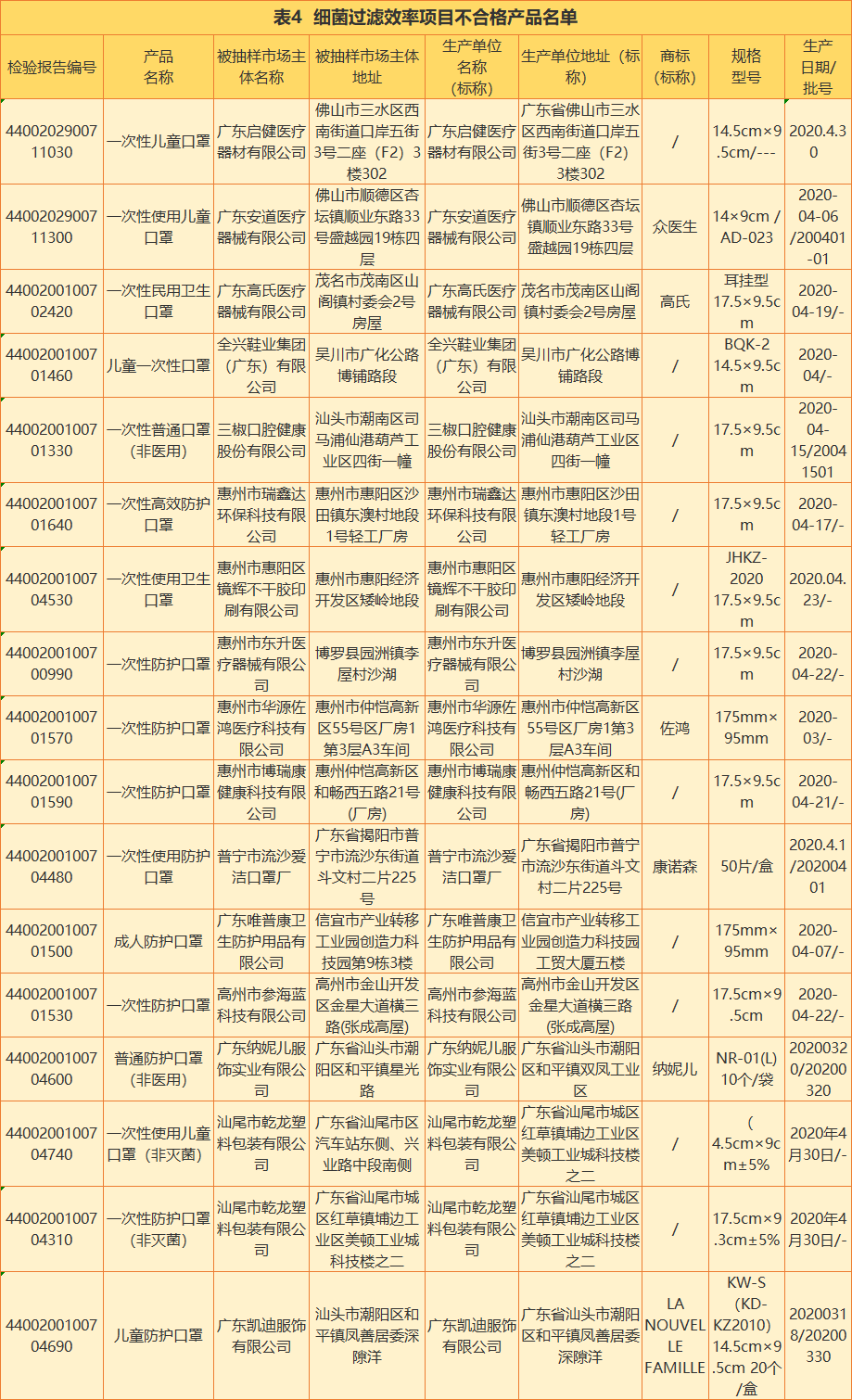 根據(jù)《中華人民共和國產(chǎn)品質(zhì)量法》《廣東省產(chǎn)品質(zhì)量監(jiān)督條例》等相關規(guī)定,廣東省市場監(jiān)督管理局開展了廣東省非醫(yī)用口罩產(chǎn)品質(zhì)量監(jiān)督抽查。本次共對廣東省579家企業(yè)生產(chǎn)的653款非醫(yī)用口罩產(chǎn)品質(zhì)量開展了監(jiān)督抽查,涉及全省21個地市。經(jīng)檢驗,發(fā)現(xiàn)160家企業(yè)生產(chǎn)的174款產(chǎn)品不合格。