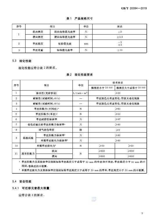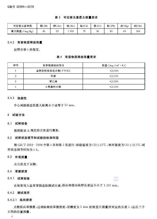 當(dāng)然,身為人造草坪的廠家一定要做好質(zhì)量把關(guān),不合格的產(chǎn)品經(jīng)不了時間和市場的考驗,一定會淘汰。目前最新國家標(biāo)準(zhǔn)GB/T 20394-2019《體育用人造草》里面有詳細的描述要求。