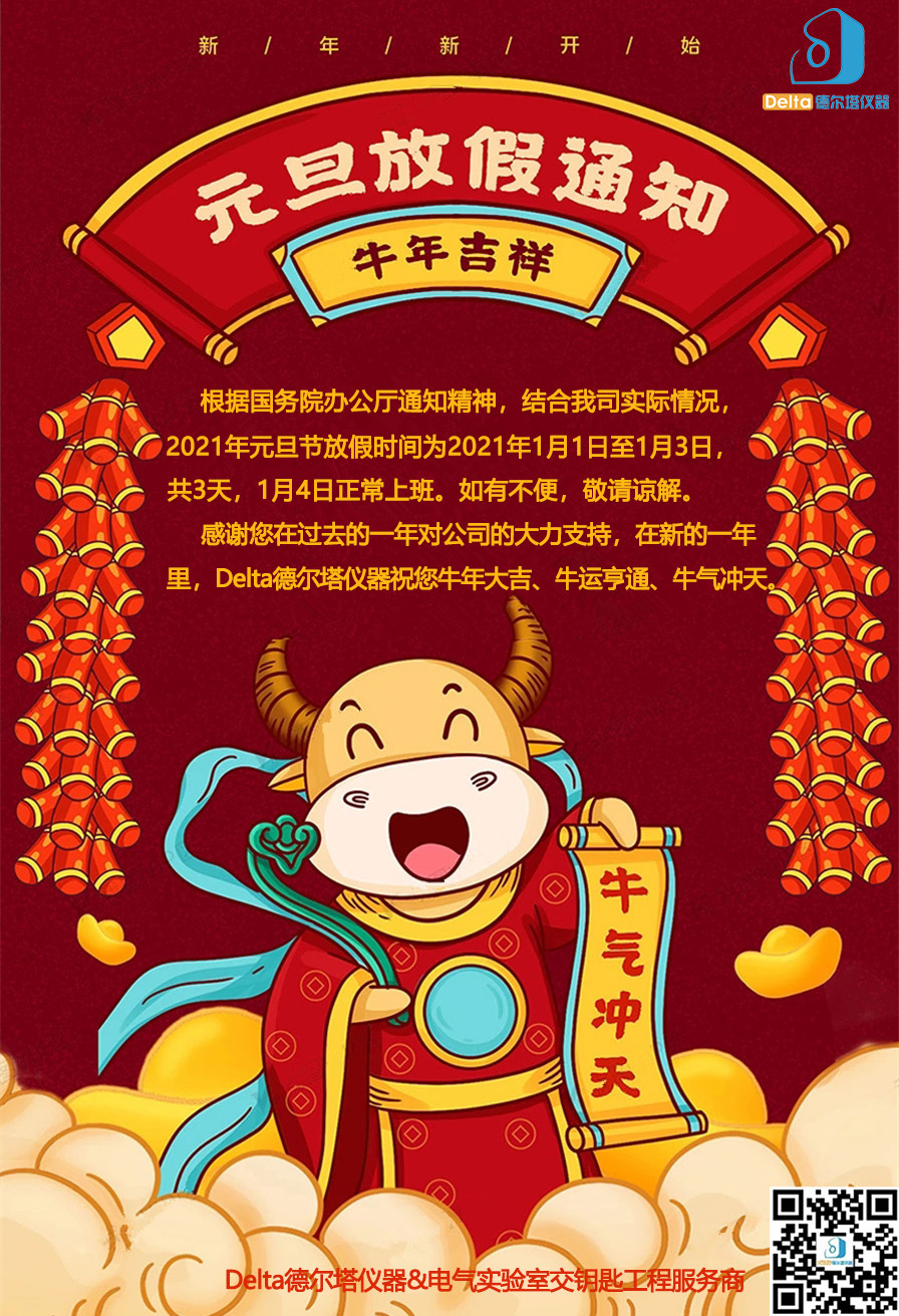 感謝您在過去的一年對公司的大力支持,在新的一年里,Delta德爾塔儀器祝您牛年大吉、牛運亨通、牛氣沖天。