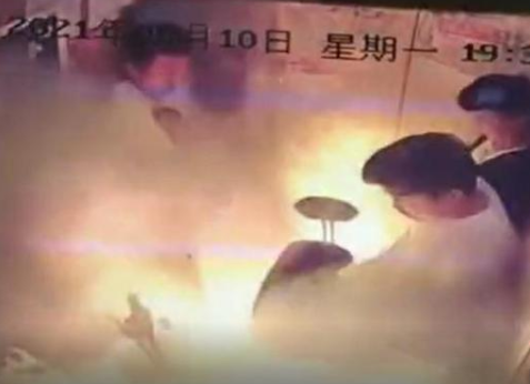 19時(shí)34分34秒,就在電梯門關(guān)閉瞬間,一秒鐘時(shí)間不到電瓶車底部突然冒起濃煙,瞬間閃起了火光,電梯內(nèi)迅速被火光和濃煙覆蓋。視頻顯示,冒煙發(fā)生同時(shí),推電瓶車的男子迅速伸手按了一下電梯開關(guān)。事發(fā)時(shí),電梯內(nèi)有4名大人和1名幼兒。