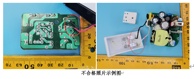 該項(xiàng)目主要考核的是產(chǎn)品配線、布線連接設(shè)計(jì)安裝的合理與否。當(dāng)存在不符合標(biāo)準(zhǔn)要求的布線連接設(shè)計(jì)安裝,在用戶使用電源適配器的過(guò)程中,配線、布線存在松脫可能,嚴(yán)重會(huì)導(dǎo)致使用者受到電擊危險(xiǎn)。