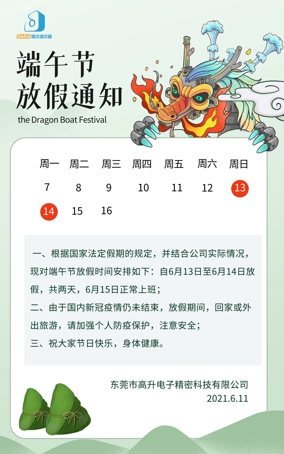 2021年端午節(jié)假期將至,根據國家法定節(jié)假日相關規(guī)定結合我司實際情況,現(xiàn)將我司端午節(jié)放假安排如下:
