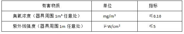晾衣機的除菌、除過敏原等功能,通常采用紫外線及臭氧的方式實現(xiàn),而紫外線和臭氧的泄漏對人體的危害不需細述,在本標(biāo)準(zhǔn)中,對晾衣機的有害物質(zhì)泄漏提出了相應(yīng)限值要求,要求見下表。