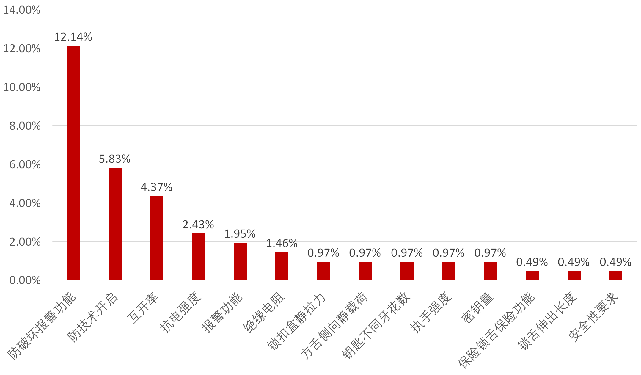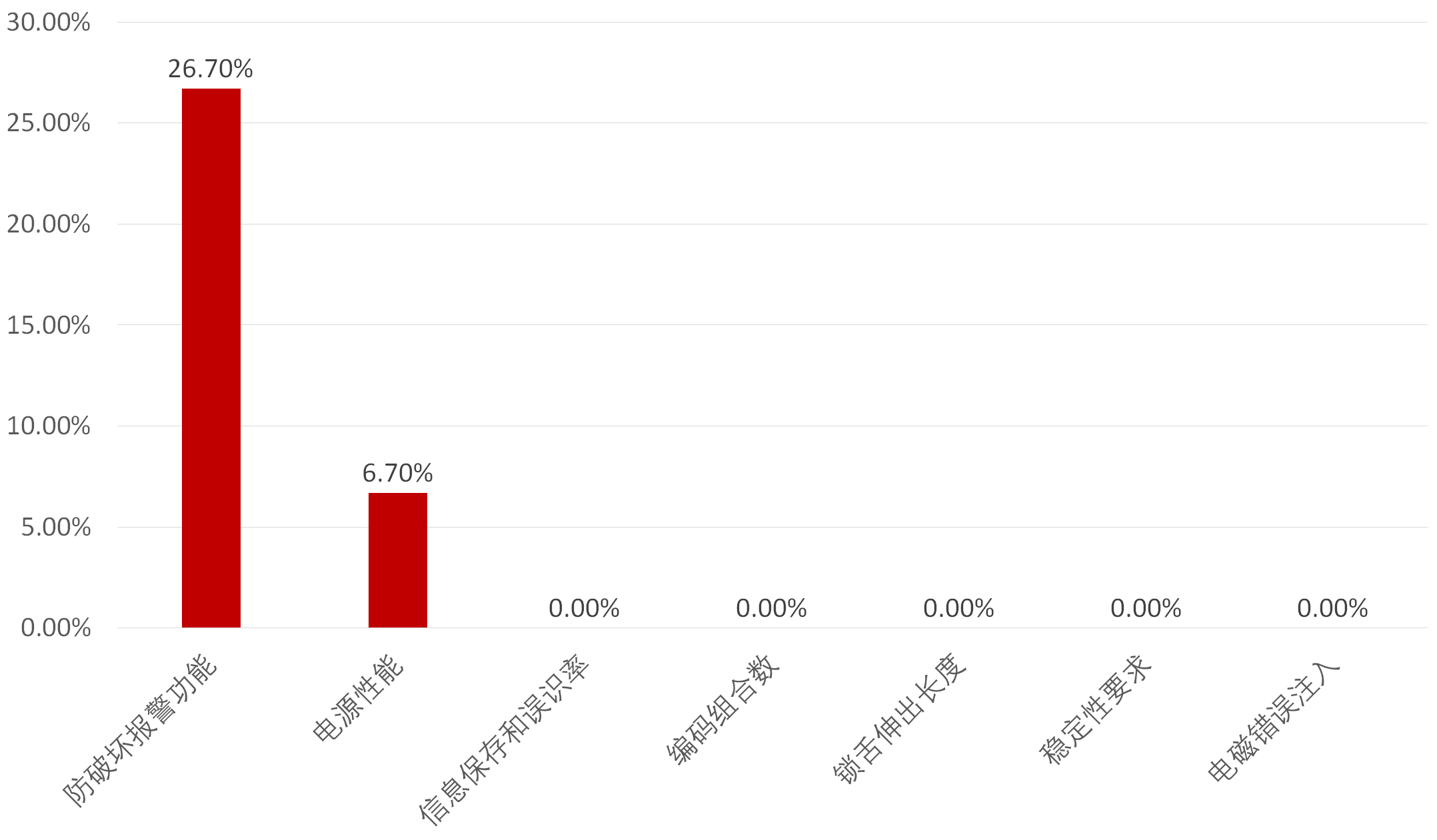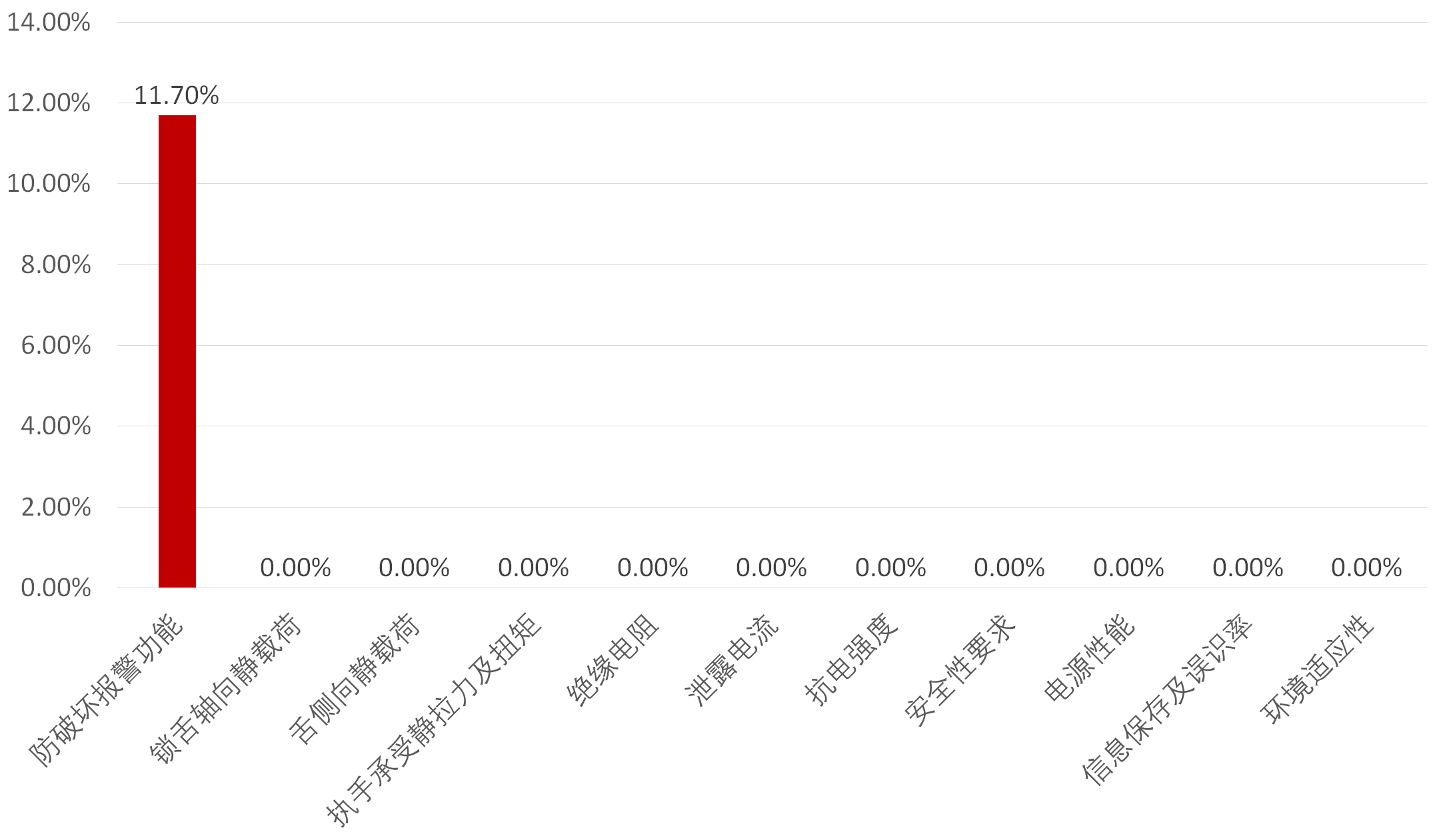 ★2020年6月至2021年6月,廣東省、浙江省、上海市、江蘇省等地對電子門鎖產(chǎn)品進(jìn)行抽查。不合格情況占比最大的為:防破壞報(bào)警功能。