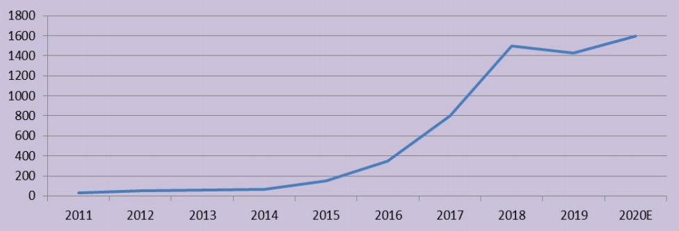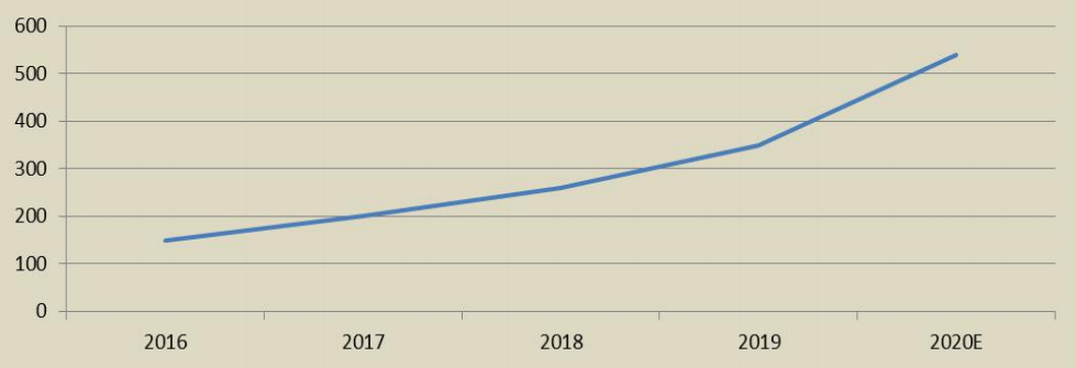 圖3 近五年智能門(mén)鎖頭部企業(yè)總規(guī)模變化示意圖