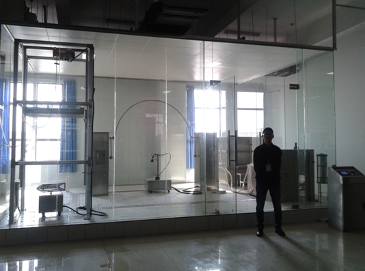 1、擺管式淋雨試驗(yàn):將試樣位于半圓形擺桿下淋水試驗(yàn)持續(xù)10min(分兩次進(jìn)行,每次5min,需水平方向轉(zhuǎn)動(dòng)90°);擺管擺動(dòng)角度為垂直方向±60°。擺動(dòng)周期4S;
