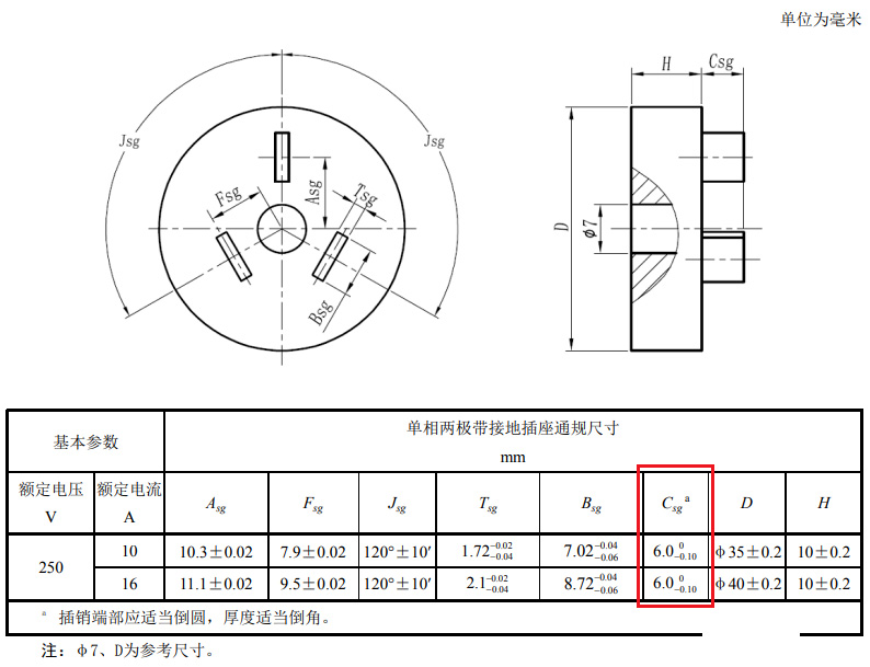 ?單相兩極帶接地插座通規(guī)(10A,16A)