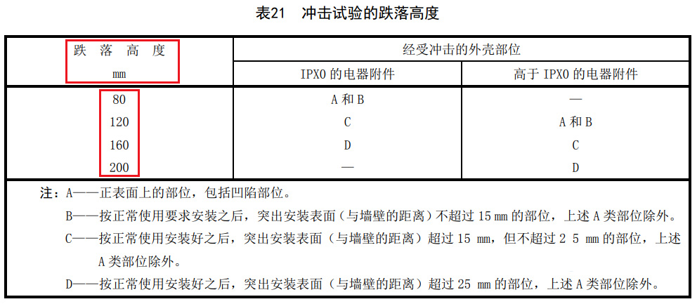 舊版標準由圖22-圖25給出,新版標準直接引用GB/T 2423.55(試驗EHA)給出的擺錘沖擊設(shè)備:“用 GB/T 2423.55(試驗 EHA)給出的擺錘沖擊設(shè)備對試樣施加沖擊進行檢查,其等效質(zhì)量為 250g。”