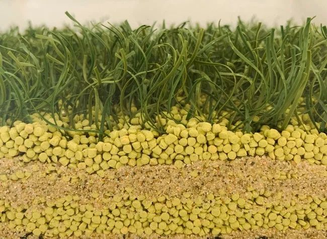對(duì)于人造草坪系統(tǒng)而言,填充顆粒是一個(gè)重要組成部分。不僅能穩(wěn)定草坪根部,使草絲直立,還可以滿足運(yùn)動(dòng)場(chǎng)地在摩擦、減震、彈性等方面的要求。