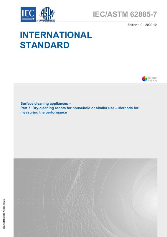 2020年10月27日,國際電工委員會發(fā)布標準IEC/ASTM 62885-7:2020“表面清潔器具-第7部分:家用或類似用途的干式清潔機器人-性能測量方法”,標準內(nèi)容關(guān)于家用或類似家用環(huán)境下的干式清潔機器人。