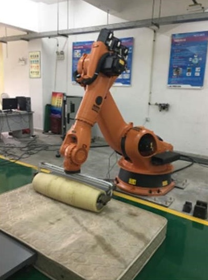 床墊耐久性測(cè)試系統(tǒng)機(jī)器人適用于對(duì)床墊墊面中心睡眠區(qū)域采用一定重量的輥筒進(jìn)行滾壓測(cè)試,模擬睡眠過程中人體翻滾情況對(duì)床墊造成的影響,對(duì)床墊邊部以規(guī)定形狀的加載墊及規(guī)定的力值進(jìn)行加載耐久性測(cè)試,模擬使用者坐于床墊邊部,臀部對(duì)床墊進(jìn)行加載而造成的影響。進(jìn)行一定次數(shù)的加載后,對(duì)比測(cè)試前后墊面高度,圍邊高度,硬度的變化及床墊損壞的情況,以評(píng)定床墊的質(zhì)量。