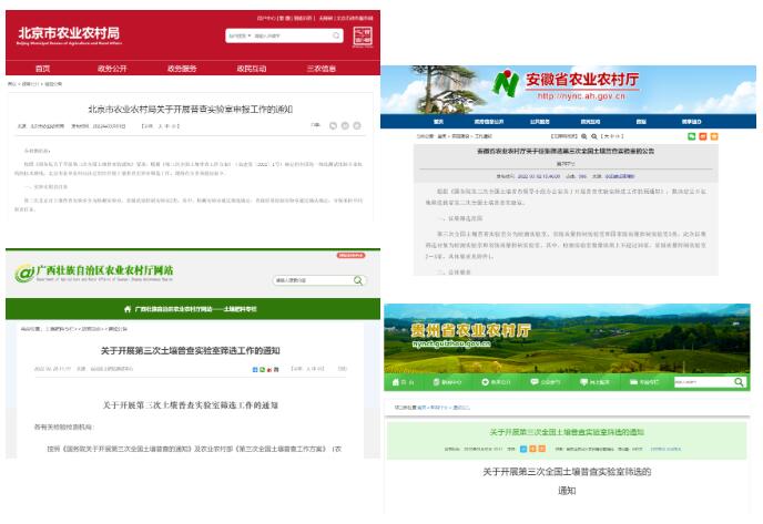 而根據(jù)《國(guó)務(wù)院第三次全國(guó)土壤普查領(lǐng)導(dǎo)小組辦公室關(guān)于開(kāi)展普查實(shí)驗(yàn)室篩選工作的預(yù)通知》(以下簡(jiǎn)稱《預(yù)通知》),北京、安徽、貴州、廣西等地均已發(fā)布相關(guān)工作通知,開(kāi)展實(shí)驗(yàn)室篩查工作。