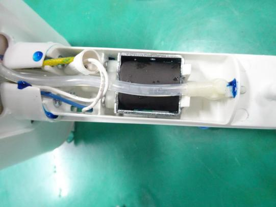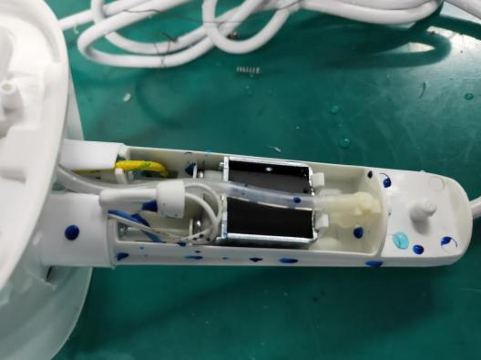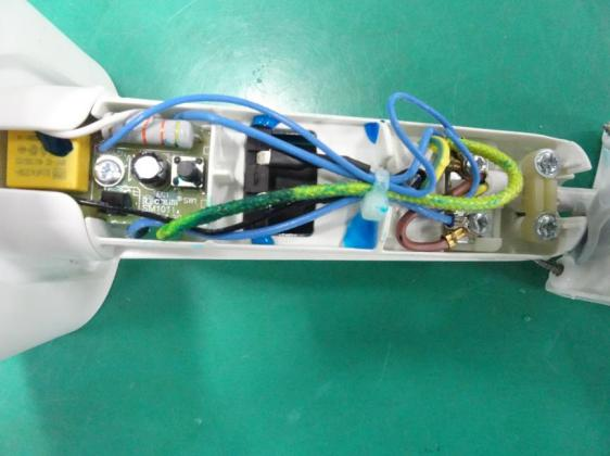 IPX4濺水后拿在手上進行最大幅度的搖晃后,擦干器具表面所有殘留水跡,再小心拆開檢查,發(fā)現(xiàn)試樣內(nèi)部部分元器件以及電線等絕緣體表面存在肉眼可見的水跡,經(jīng)過對樣品內(nèi)水跡部位仔細查看,部分水跡使樣品內(nèi)的爬電距離和電氣間隙降低至低于第29章的要求,結(jié)果判定為不合格。
