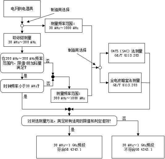 圖10 30 MHz~1 000 MHz頻段電網(wǎng)供電器具發(fā)射測(cè)試流程圖