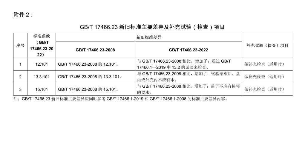 2.GB/T 17466.23新舊標(biāo)準(zhǔn)主要差異及補(bǔ)充試驗(yàn)(檢查))項(xiàng)目