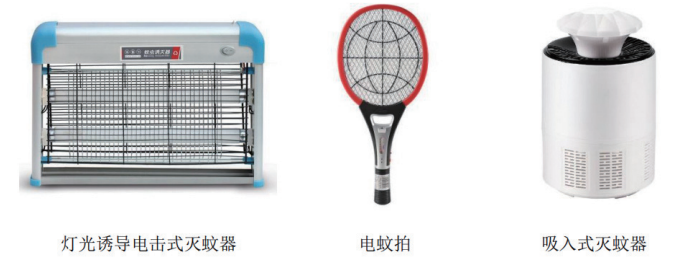 電滅蚊器具是日常生活中用于滅殺蚊蟲的器具,常見于家庭、餐館、醫(yī)院等場所。按照不同的分類方法,電滅蚊器具可以分成不同的類型。從工作原理上區(qū)分,主要包括電擊式滅蚊器、吸入式滅蚊器和復(fù)合功能型滅蚊器等類別;從安裝方式上可區(qū)分為手持式、便攜式和固定式;從控制方式上可區(qū)分為電子控制和機(jī)械控制兩種形式。目前市面上常見的產(chǎn)品類型有:燈光誘導(dǎo)電擊式滅蚊器、電蚊拍、吸入式滅蚊器(如圖1所示)。