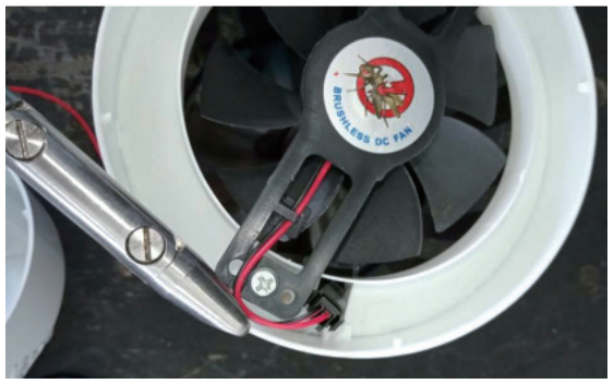 圖8 試驗(yàn)探棒觸及電機(jī)扇葉