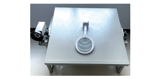 由于底座面積、配重不足,導(dǎo)致該類產(chǎn)品穩(wěn)定性不足,當(dāng)放置在一個與水平面成10°的傾斜平面上時(shí)翻倒(如圖7所示)。應(yīng)適當(dāng)增大底座的面積或增加配重塊,使產(chǎn)品重心下移,提高穩(wěn)定性。