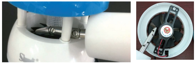 運(yùn)動部件的放置或封蓋,應(yīng)在正常使用中對人身傷害提供充分的防護(hù)。電機(jī)扇葉未進(jìn)行有效防護(hù),試驗(yàn)探棒可直接觸及扇葉;集蟲盒不借助工具就可拆下,拆下后,試驗(yàn)探棒可觸及電機(jī)扇葉,是吸入式滅蚊器常見的不合格情況(如圖8所示)。