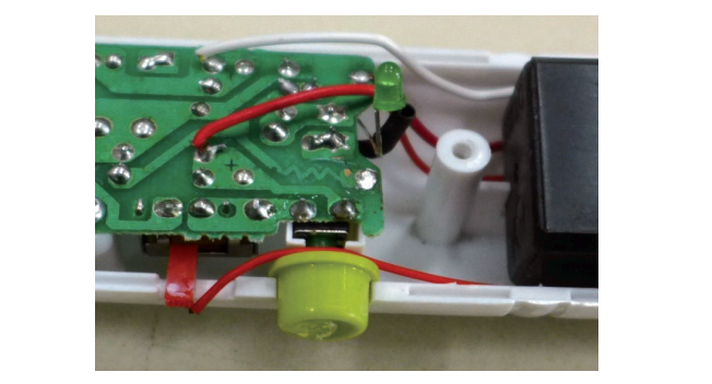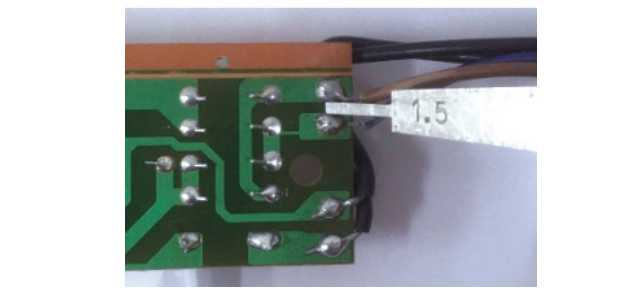 (2)電滅蚊器具內(nèi)部布線僅依靠搭焊,松脫后帶電部件到外殼之間的電氣間隙、爬電距離小于標(biāo)準(zhǔn)規(guī)定值(如圖9所示)。應(yīng)增加扎帶綁扎等額外固定措施或使用鉤焊。