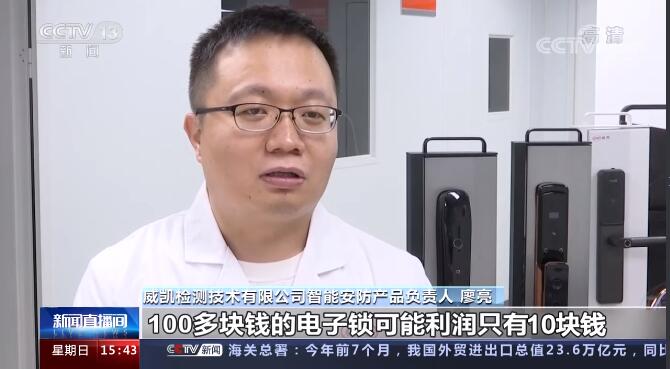 本次電子鎖國抽中,央視新聞采訪了威凱檢測(cè)技術(shù)有限公司智能安防產(chǎn)品負(fù)責(zé)人,并且說出了電子鎖檢測(cè)中存在的不合格原因。在不合格項(xiàng)目中,防破壞報(bào)警功能及阻燃性能等兩個(gè)不合格項(xiàng)尤為突出。值得一提的是,阻燃項(xiàng)目不合格是近三年來首次檢出。
