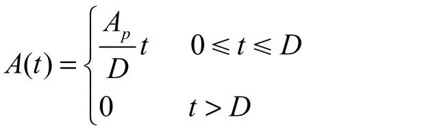 (2)后峰鋸齒波沖擊脈沖。后峰鋸齒波沖擊脈沖可以用一個時間的連續(xù)函數(shù)描述: