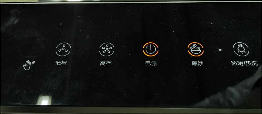 4.爆炒狀態(tài)下,短按“低檔”鍵,風機以低速運行;短按“高檔”鍵,風機以高速運行。