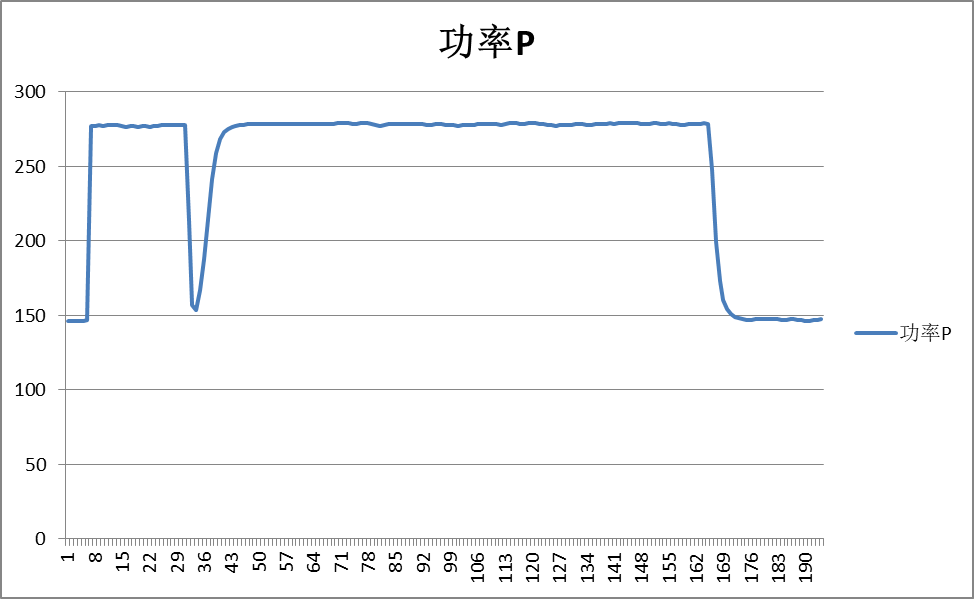 注:0-6?s吸油煙機在“高”擋位運行,第7?s按“爆炒”鍵,由于產(chǎn)品是直流變頻控制,輸入功率都不是“穩(wěn)定”而是動態(tài)調(diào)整。第162?s自動恢復原來的“高”擋位運行,功率保持穩(wěn)定值147W。