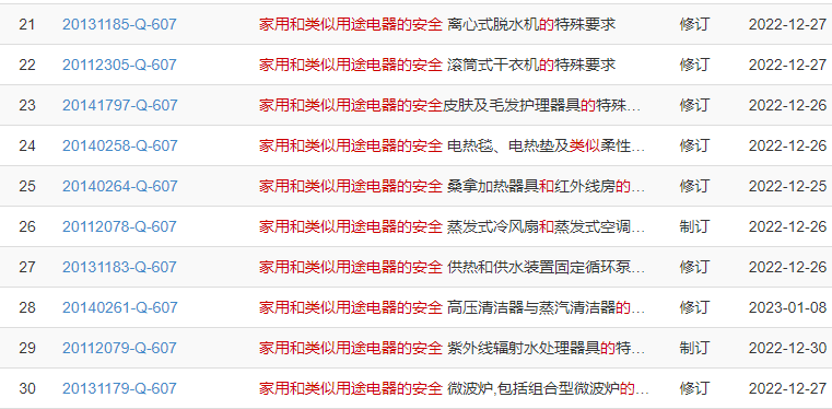 近日,《家用和類似用途電器的安全 第1部分:通用要求》等34項(xiàng)家用電器安全國家標(biāo)準(zhǔn)在全國標(biāo)準(zhǔn)信息公共服務(wù)平臺公開征求意見,所有標(biāo)準(zhǔn)均由強(qiáng)標(biāo)變?yōu)橥茦?biāo),提醒相關(guān)行業(yè)關(guān)注。