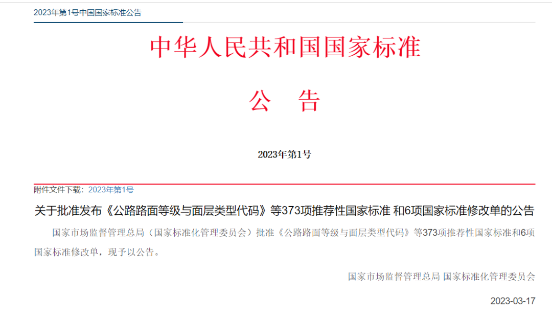 近日,國家市場監(jiān)督管理總局(國家標準化管理委員會)發(fā)布了2023年第1號中國國家標準公告,批準發(fā)布373項推薦性國家標準和6項國家標準修改單。